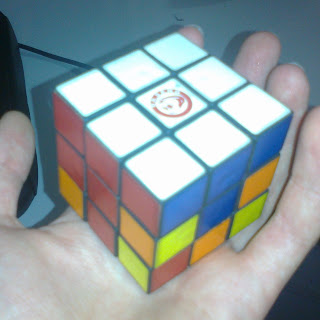 Remember how last holidays I decided to teach myself to juggle? Well, apparently learning useless skills is a 'thing' of mine now because yesterday I bough a Rubik's cube with the intent of spending the next six weeks learning to solve it. This is as far as I've got it, so far: