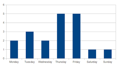 This one baffled me a bit until Morgan pointed out that Thursday is when movies generally premiere. Friday is, of course, the day which I have consistently had off since I started uni. What's that you say? Not everyone has Fridays off? Well, sucks to be them. There's gotta be at least one advantage to doing an Arts degree, and I'm pretty sure that's it.