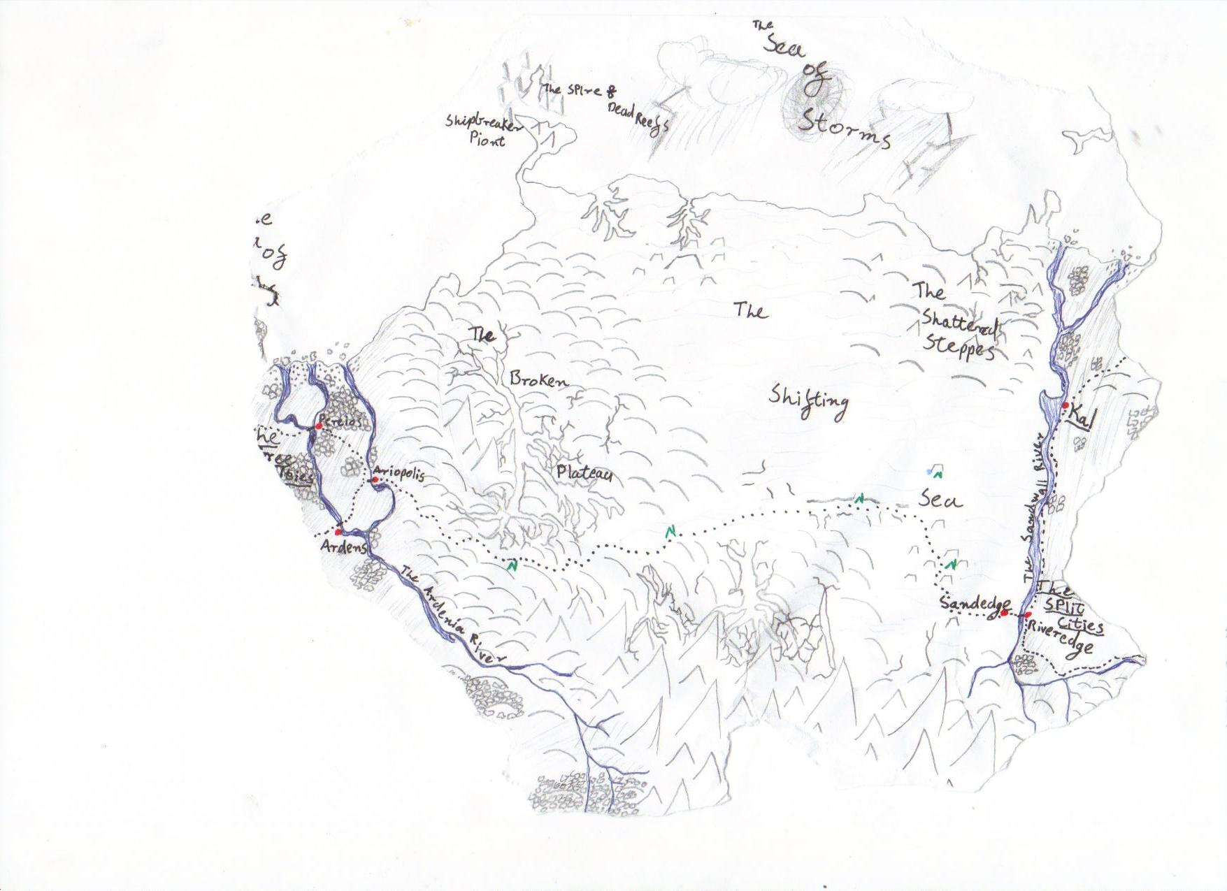 The Desert Road is a worldbuilding project I did over the course of a week or two in December 2012 and January 2013. It's a sort of pulpy action-adventure type dealie, set in and around a huge mysterious desert.