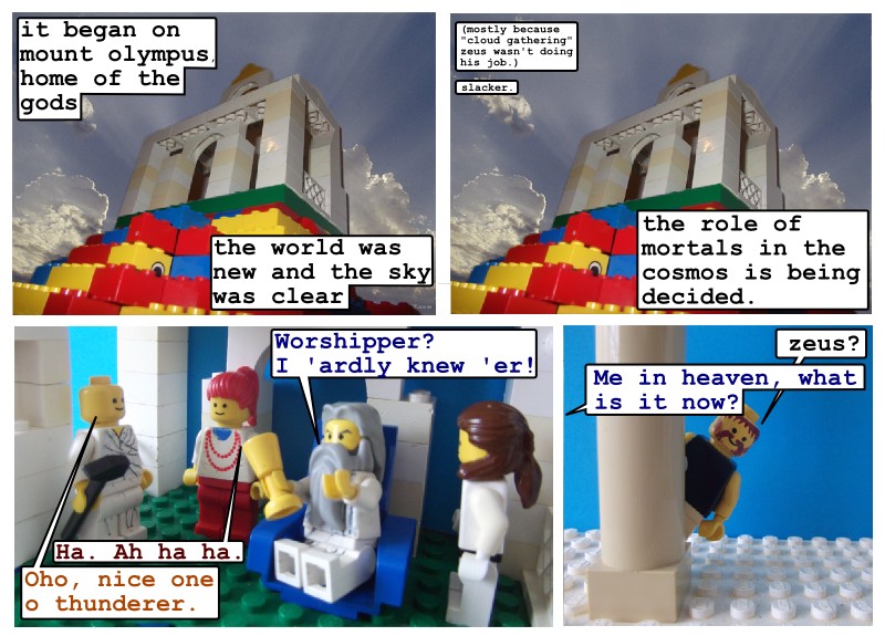 Likewise, Zeus plays a different role in every version of myth. In the Theogony, he is the legitimate and just ruler of the cosmos, and Prometheus' rebellion is what brought trouble to mankind: