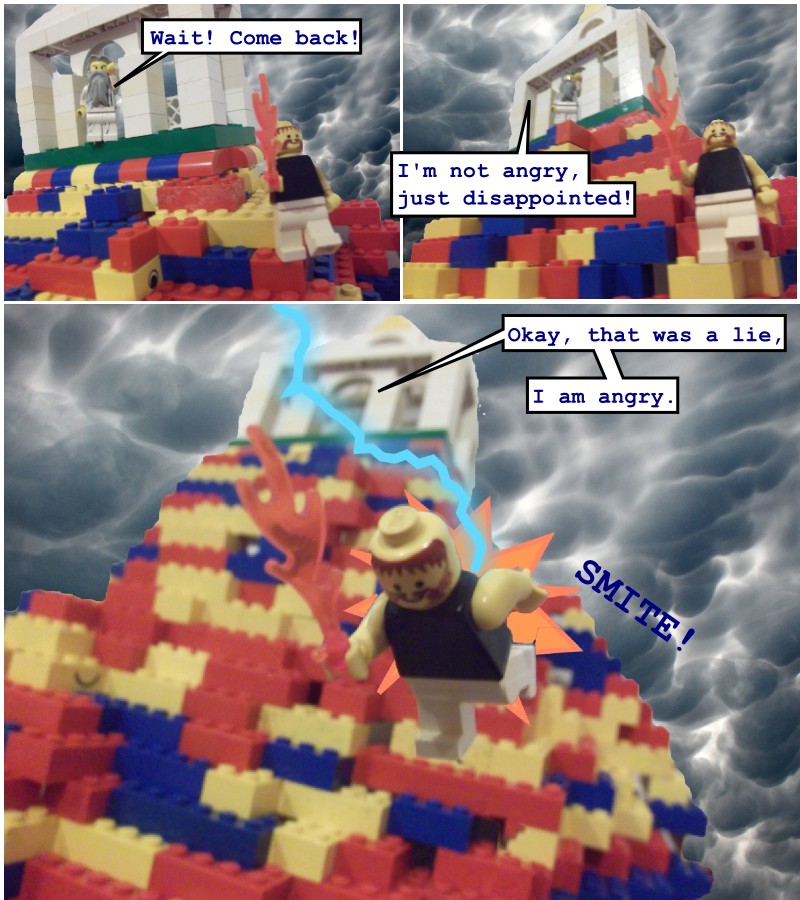 Obviously they don't make those in Lego, so I didn't use one. Its inclusion in the myth actually seems a bit odd - Hesiod's version is extremely sparse in in detail in all other areas, and yet for some reason includes the precise vegetable used to smuggle fire away.